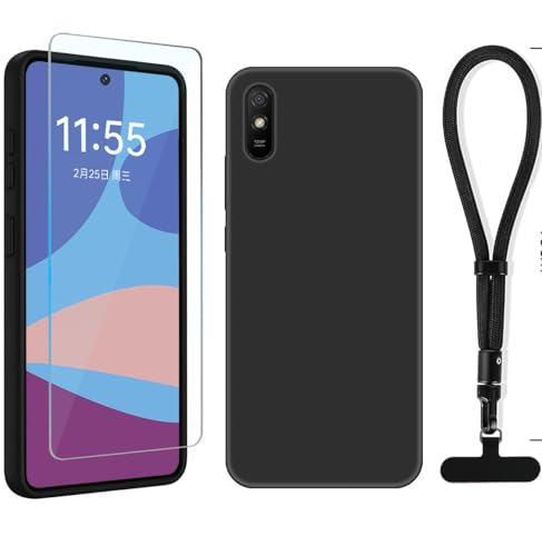 YonderYM Coque pour Xiaomi Redmi 9AT,avec Protecteur d'écran & Bracelet Telephone Étui de Protection Antichoc Anti-Rayures Noir Obsidienne