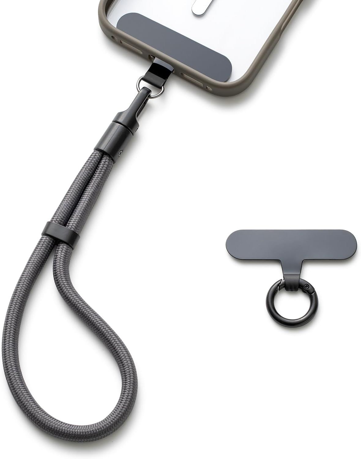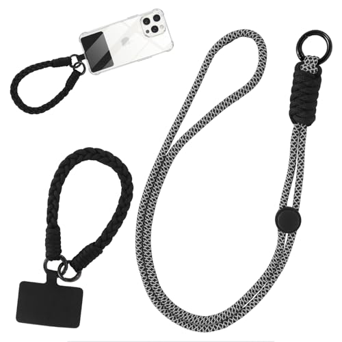 Jrkvniv Cordon Telephone Portable Universelle, Chaîne de Téléphone Portable, Corde avec Patch, Bracelet Telephone Courts, Lanière Dragonne Telephone Portable, Porte-clés Chaine Portable, Gris