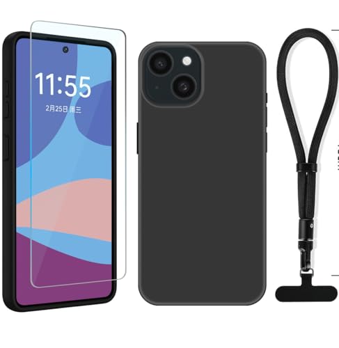 YonderYM Coque pour iPhone 15,avec Protecteur d'écran & Bracelet Telephone Étui de Protection Antichoc Anti-Rayures Noir Obsidienne