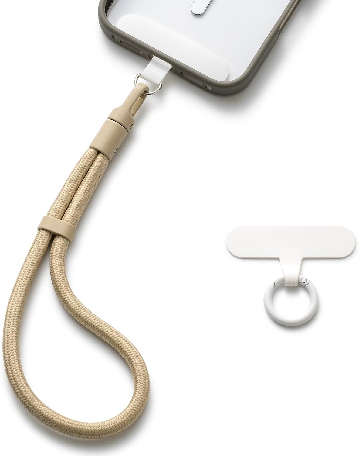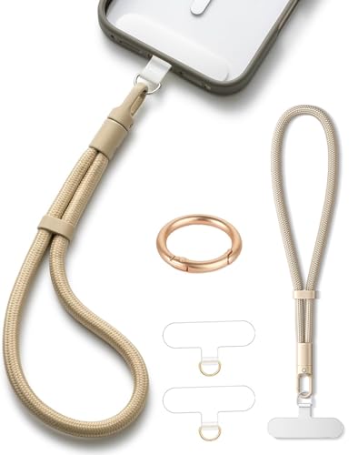 Casecond Chaîne de Téléphone Portable Lanyard Bande Bracelet Telephone Portable Cordon Courte Universelle Poignet Réglable Chaine Lanière avec 3 Patchs pour iPhone 16 Pro Max Porte-clés Clé Chameau