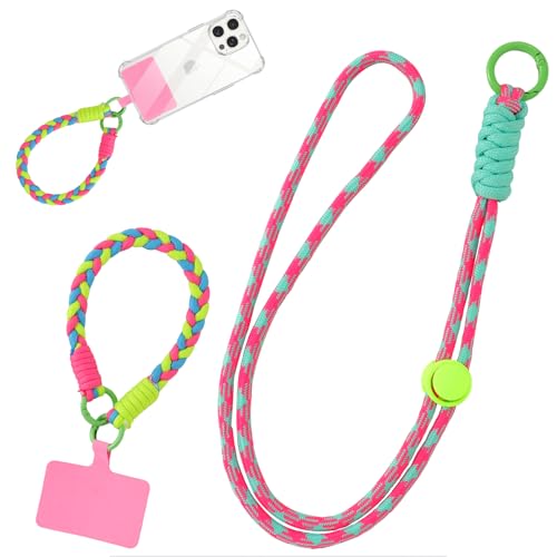 Jrkvniv Cordon Telephone Portable, Tour de Cou Téléphone Universelle avec Patch, Réglable Amovible en Nylon Chaine Collier Lanière Corde Pendentifs, Bracelet Telephone pour Femmes Filles, Coloré 05
