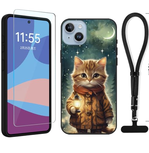 YonderYM Coque pour iPhone 14,avec Protecteur d'écran & Bracelet Telephone Étui de Protection Antichoc Anti-Rayures Lampe et Chat