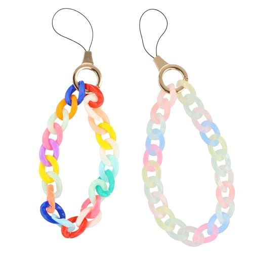 Marjoramy 2 Pièces Chaîne Colorée en Acrylique, Pendentifs pour Téléphones Portables, Bijou Telephone Portable, Bracelet Telephone, Charme de Téléphone avec Porte Clés, Dragonne pour Porte Clés
