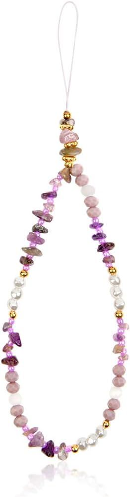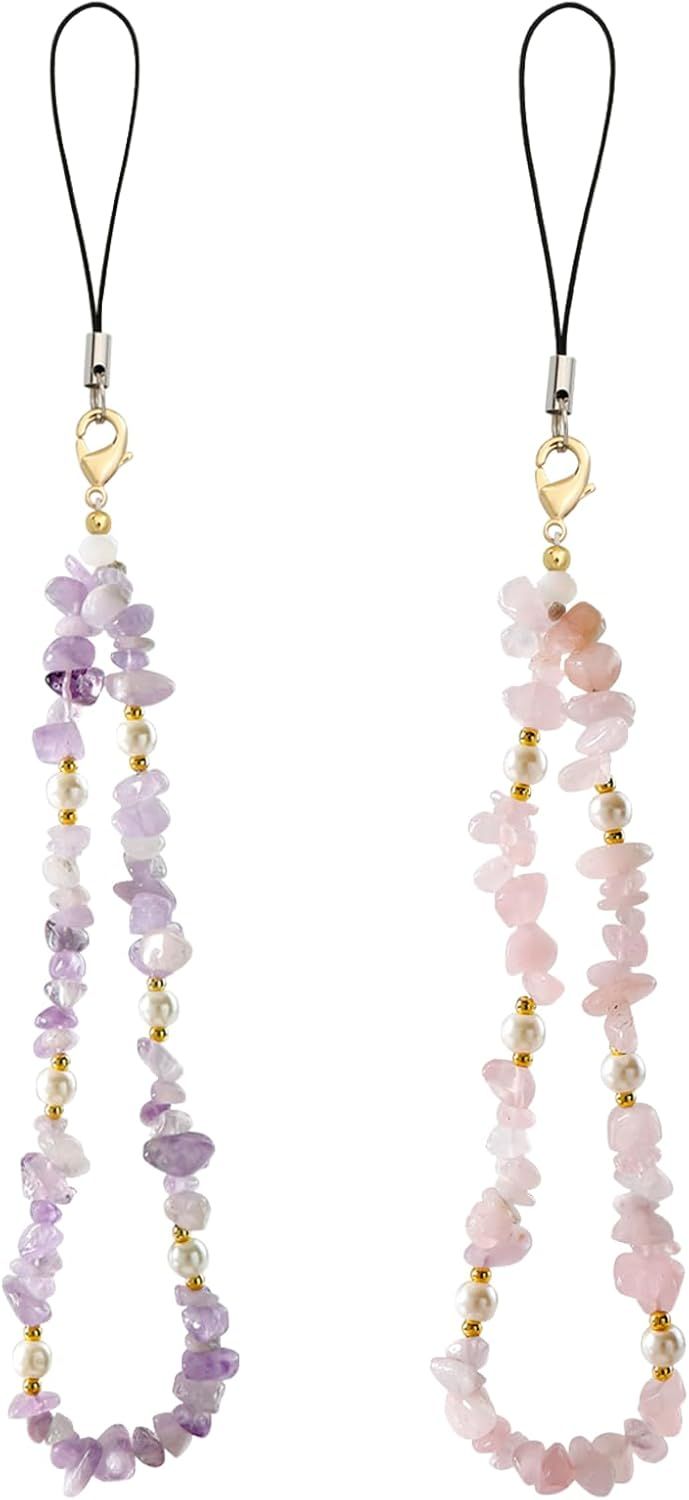 keyxer 2 Pièce Cordon Telephone Portable, Cristal Naturel Bracelet Telephone, Universelle Chaine de Telephone, Bijoux De Telephone, Dragonne Telephone Portable pour Femmes Filles(Rose+Violet)