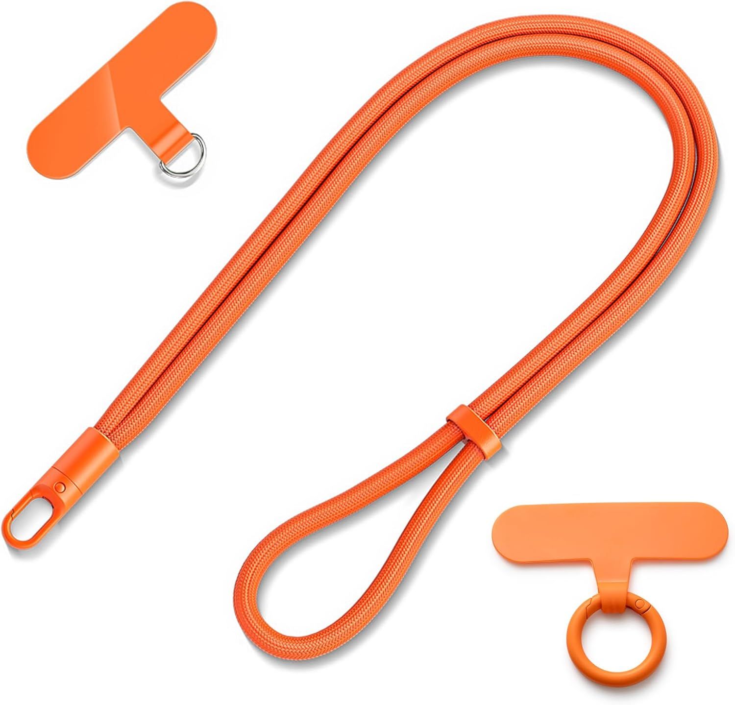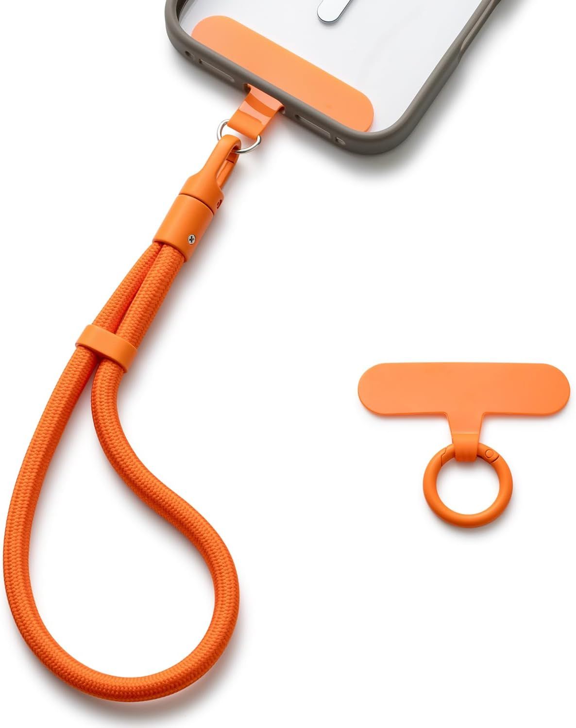Casecond Chaîne de Téléphone Portable Lanyard Bande Bracelet Telephone Portable Cordon Courte Universelle Poignet Réglable Chaine Lanière avec 3 Patchs pour iPhone 16 Pro pour Porte-clés Clé Orange