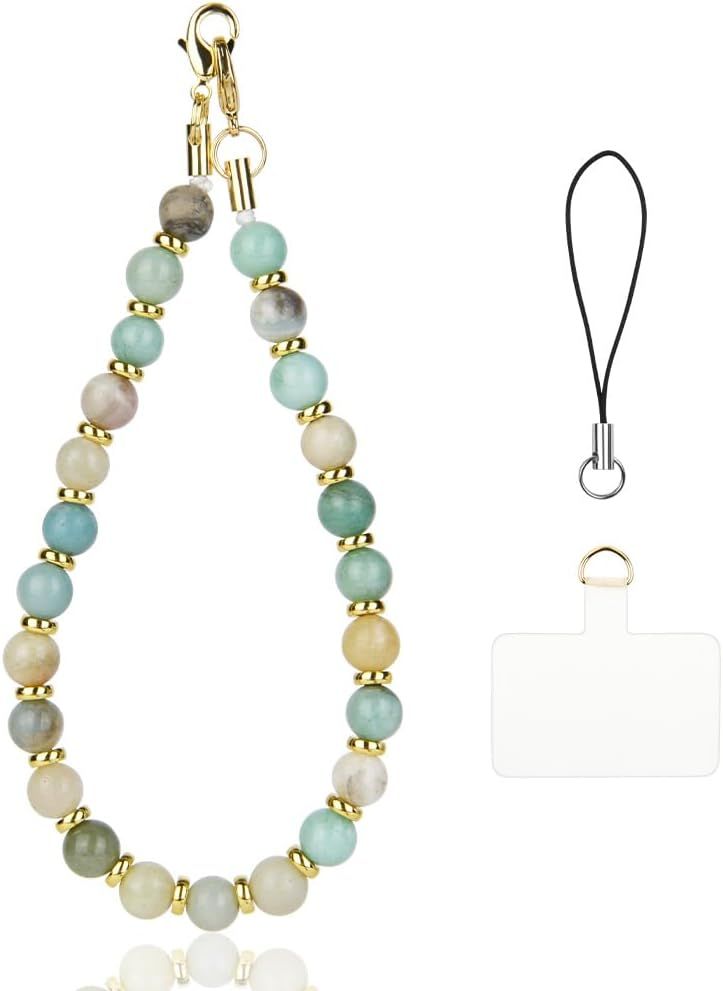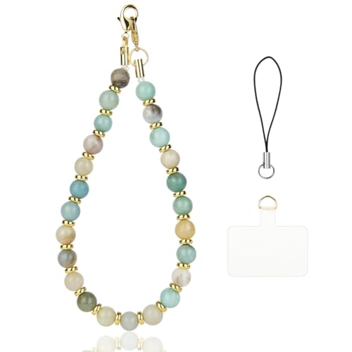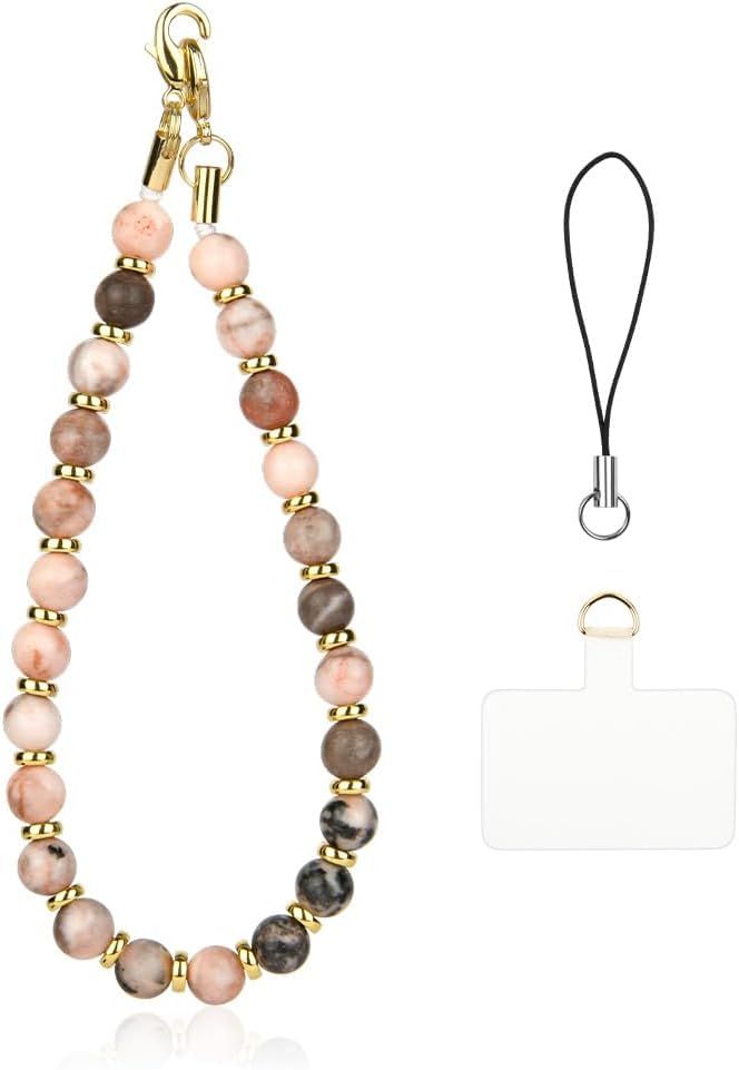 OFFCUP Dragonne de Téléphone Pierre Perlée, 1PCS Chaîne Téléphone Portable Charme De Téléphone, Anti-Perte Pierres Naturelles Longe de Téléphone, Bracelet Telephone avec Onglets Détachable (B)