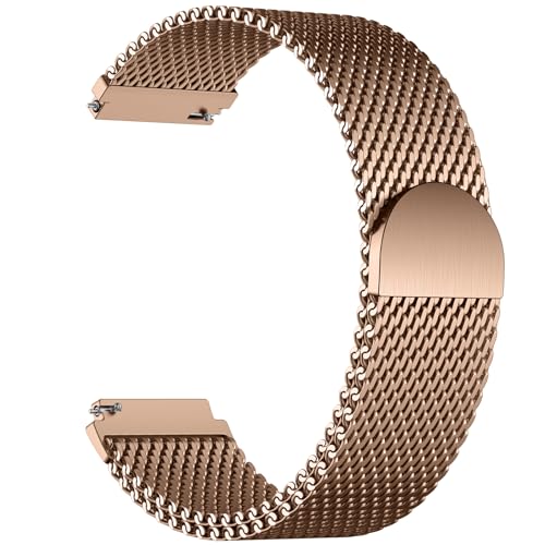 Mastten Bracelets en métal pour Garmin Venu 3S - Bracelet pour Garmin Venu 2S - Bracelet Vivoactive 4S, bracelet de montre 18mm en maille en acier inoxydable avec aimant pour femmes et hommes, or rose