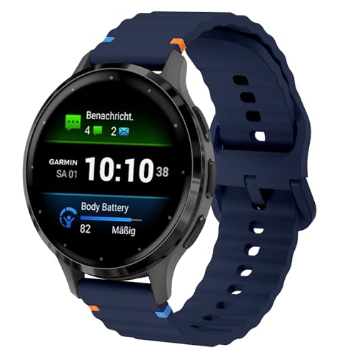 Yikamosi Compatible avec Garmin Venu 3S Bracelets pour Femmes et Hommes,18MM libération Rapide Silicone Souple Fermoir en Acier Inoxydable Remplacement Bracelet pour Garmin Venu 3S/Venu 2S,Bleu Nuit
