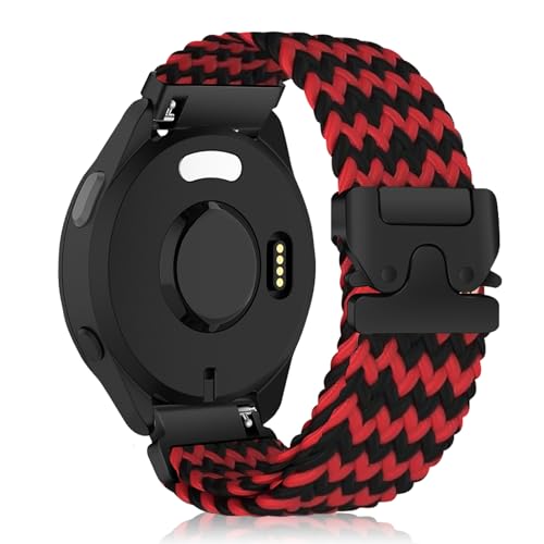 KeHowy 20mm Nylon Bracelet pour Garmin Vivoactive 5/6/Forerunner 165/165 Music/245/245 music/645 music/570 42mm, Sport Tressé Bracelets pour Garmin Venu Sq 2/Venu 2 Plus/Approach S50/S44 - Rouge/Noir