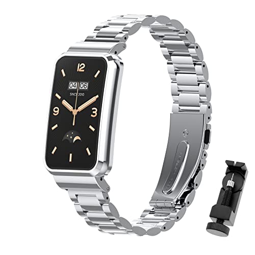 ToVioc Bracelet Compatible avec Xiaomi Mi Band 7, Élégant et Gentleman Bracelet de Rechange Réglable en Acier Inoxydable Compatible avec Xiaomi Smart Band 7 - Argent