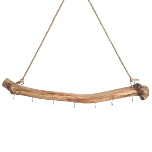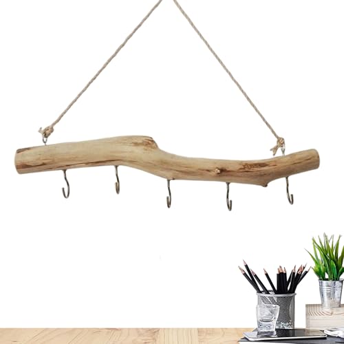 Branche en bois rustique à suspendre, décoration murale en bois flotté naturel, accessoire de maison avec crochets, organisateur de bijoux avec matériau robuste, solution de suspension décorative pour