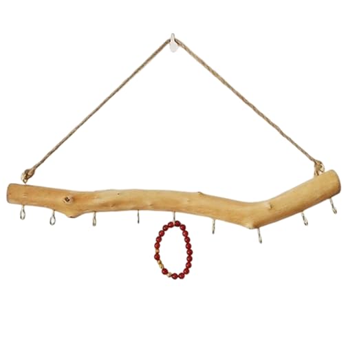 Crochets muraux en bois flotté naturel – Cintre à bijoux en bois | Branche en bois de 45 cm avec crochets faits à la main, organiseur mural avec finition rustique, accent décoratif, branche décorative