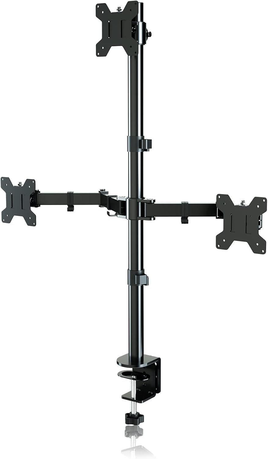 JUEN-Bras Ecran Pc,Support 3 Ecran Pc,Support Triple Écran Pour Écrans 13-27 Pouces(80Cm Pôle),Bras Articulé Écran Pc Supporte Jusqu'À 10Kg,Triple Bras De Moniteur Vesa 75/100Mm Md6843
