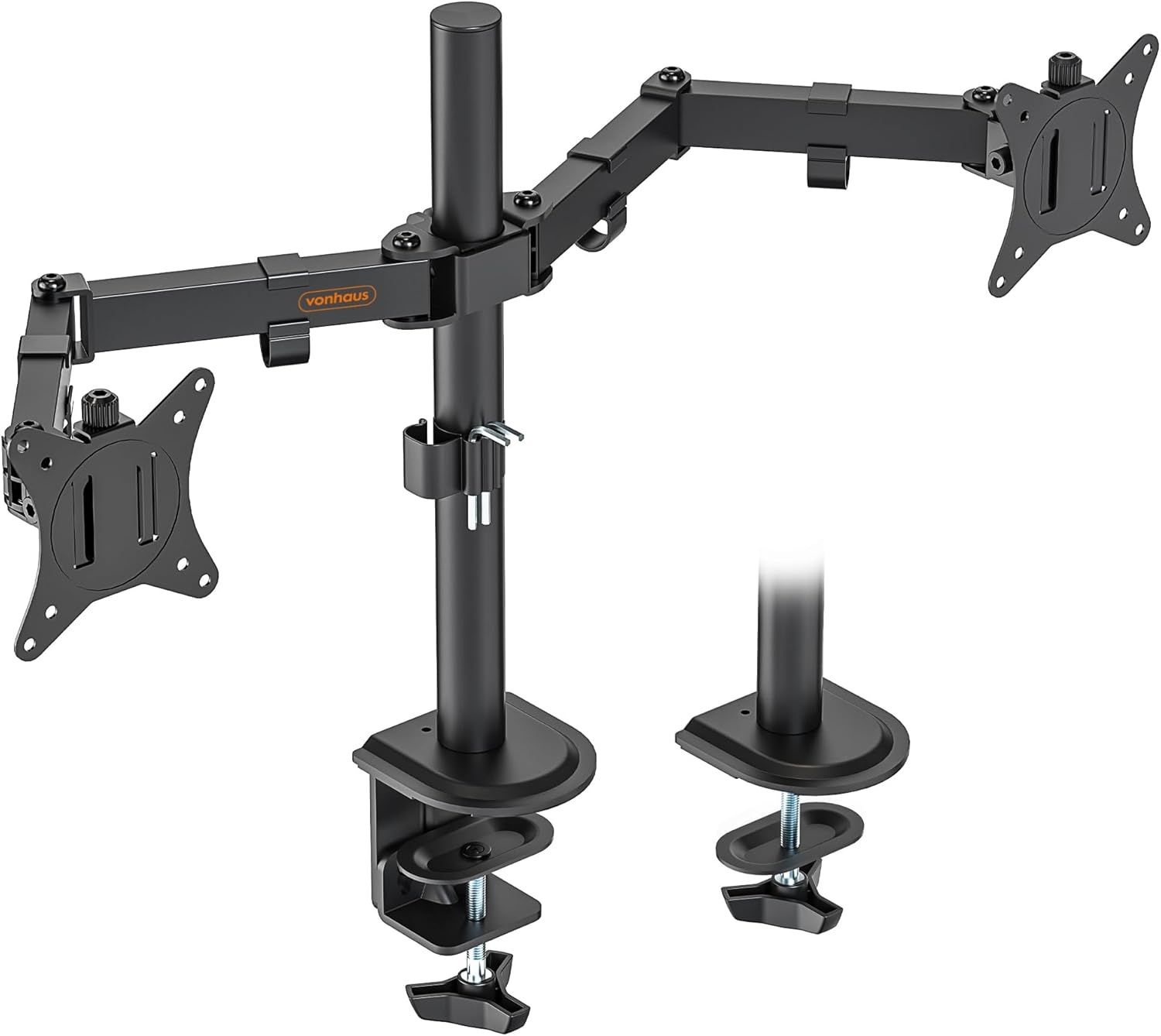 VonHaus Double Support Écran de 13-32" - Bras Articulé Écran PC avec Pince de Bureau, Réglable en Hauteur, Inclinaison Complète, Bras Rotatif et Pivotant, VESA 75x75, 100x100 mm