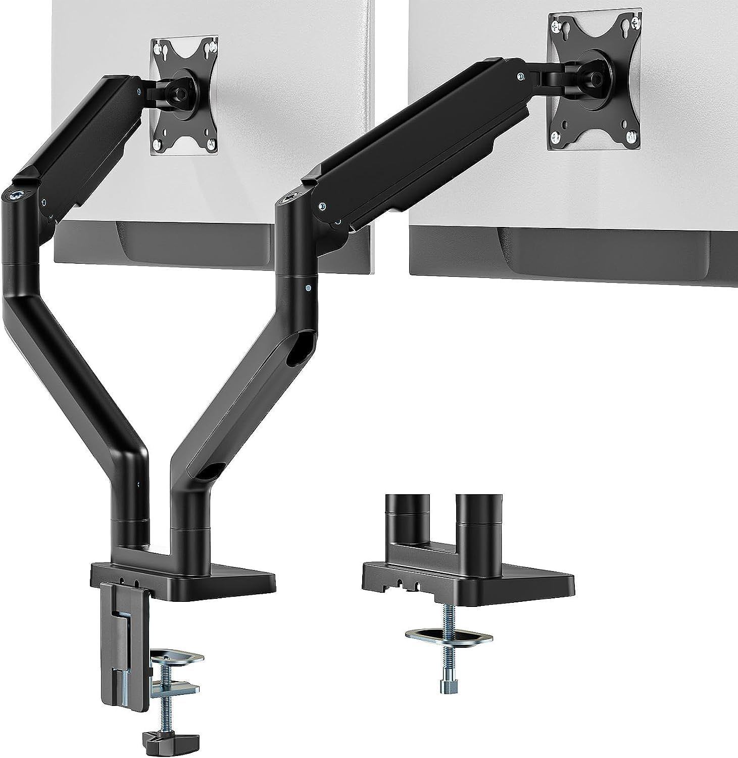 Support Ecran PC Support double écran 17-32", support double écran à ressort à gaz, support VESA 75x75 100x100, bras double écran en aluminium à mouvement complet, peut contenir jusqu'à 17,6 lb/bras B