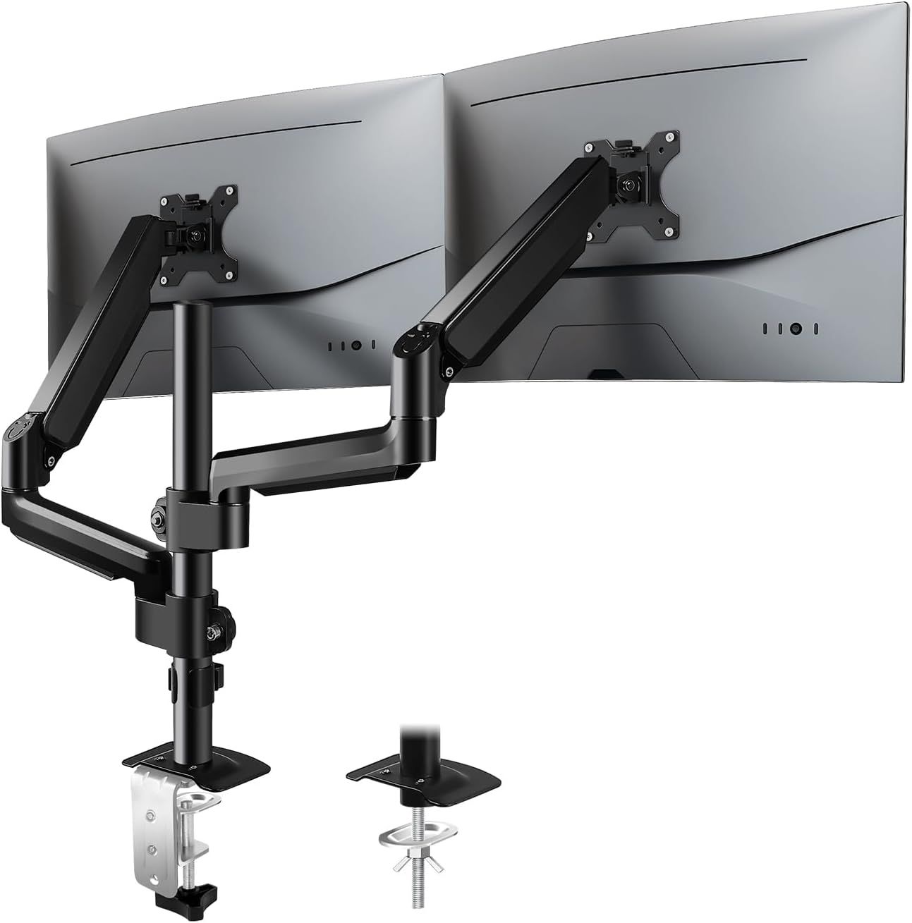 JUEN-Support Ecran Pc 2 Ecran De 17 À 35 Pouces,Double Écran Pc Robuste Avec 16 Kg Par Bras,Réglable En Hauteur Bras Double Avec Incline,Pivote Et Tourne,Vesa 75 Et 100 Mm