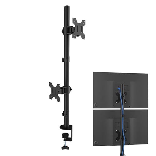 WAOCEO Support Ecran PC Support de Bureau for Double Moniteur LCD, Support de Bureau Robuste empilé et réglable avec Base perforée, Peut contenir 2 écrans verticaux jusqu'à 27" Bras de Moniteur
