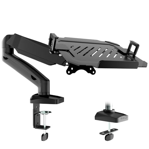 UPGRAVITY Bras à ressort à gaz 2 en 1 pour ordinateur portable de 12"-17"/écran 13-32, support de bureau réglable à mouvement complet avec plateau, peut supporter 1,5 à 8 kg, base à pince et œillet
