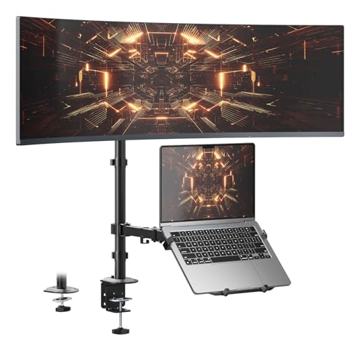 PUTORSEN Support de Moniteur avec Bras pour Ordinateur Portable de 17 à 49" et Ordinateur Portable jusqu'à 17 ", Bras réglable en Hauteur de 81,8 cm, Bras pour écran VESA 75/100