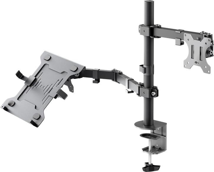 STANDOPIA Support 2 en 1 pour Ordinateur Portable de 11,6 à 17,3" et écran de 17 à 32 ", Support de Bras pour Ordinateur Portable jusqu'à 9 kg, VESA 75/100 mm, Pince de Table et Fixation à œillets