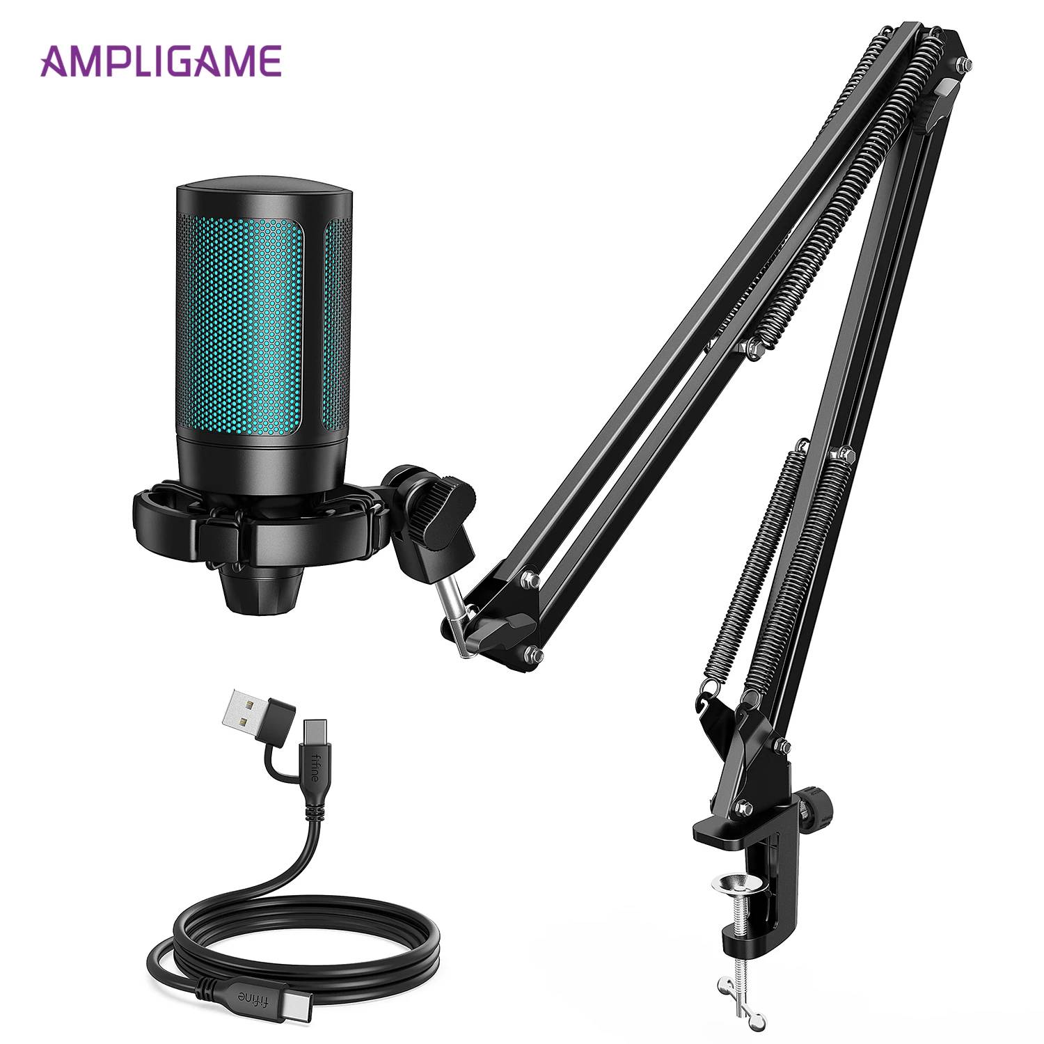 Ampligame By Fifine Kit De Microphone De Jeu Avec Muet Pour Mobile,Ensemble De Micro Usb Rgb Avec Bras Pour Pc,Ordinateur Portable,Ps5,Streaming-A2T.A2T.