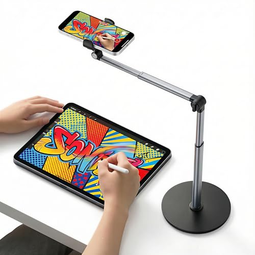 Support de téléphone portable – Station d'accueil réglable de 21,6 cm | Support de téléphone télescopique en métal | Support de tablette de bureau avec bras au-dessus de la tête pour l'enregistrement