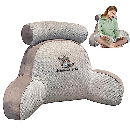 CCTSA Oreiller de Lecture en Mousse à Mémoire de Forme,Extra-Large Coussin de Lecture avec Cou Amovible,Coussin Lombaire Lit avec Bras,Coussin Dossier Canapé pour Jouer,Lire,Regarder la Television