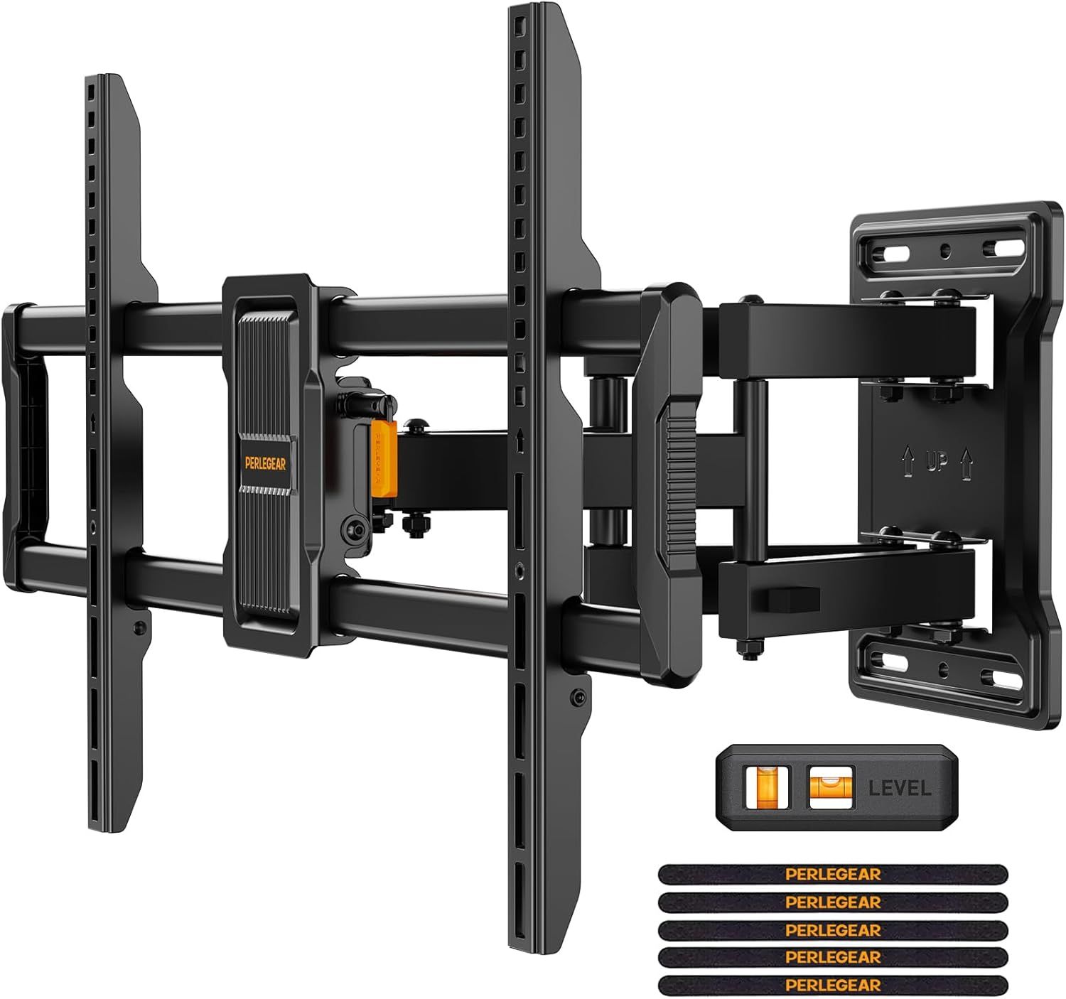 Perlegear Support Mural TV Orientable pour écrans 42-86 Pouces Jusqu'à 60 kg, Bras Television Mural Mouvement pour écrans Plats/Courbés, Inclinaison sans Outil, Max. VESA 600 x 400mm
