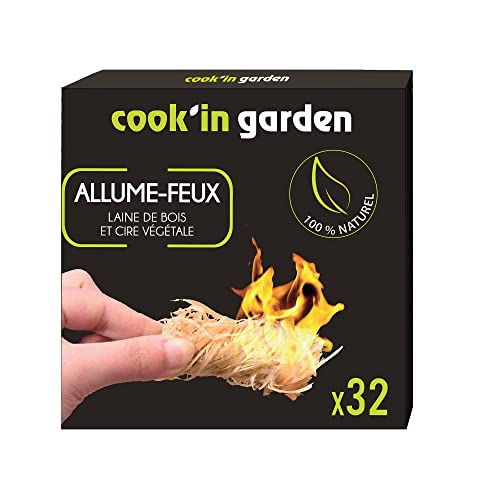 Cook’in Garden - Allume-Feu, Boîte 32 Cubes en Laine de Bois FSC® 100%, sans Odeur et Inodore, Allumage Facile pour Barbecue, Brasero, Poêle ou Cheminée, Utilisation Extérieure