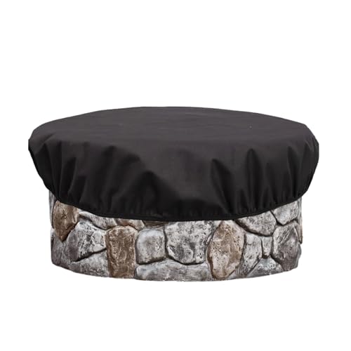 QOXEZY Housse de brasero en tissu Oxford 600D pour brasero rond en pierre, protection résistante aux intempéries avec bande élastique, noir (Φ 101,6 x 10,2 cm)