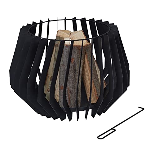 Relaxdays Braséro Rond avec tisonnier, en Acier, Design Moderne, H x D : env. 40 x 60 cm, pour Jardin et terrasse, Noir