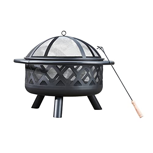 Teamson Home Braséro de Jardin à Bois Chauffage extérieur Acier Foyer Rond 75cm avec Couvercle de Protection et tisonnier Noir CU296
