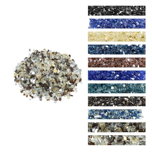 VEVOR Verre de Feu pour Braséro, 4,5 kg, Pierres en Verre pour Foyer à Gaz, 12,7 mm, Réfléchissantes, Pierres Décoratives pour Cheminée à Gaz, Intérieur, Extérieur, Bleu Cobalt, Bleu Aqua, Transparent