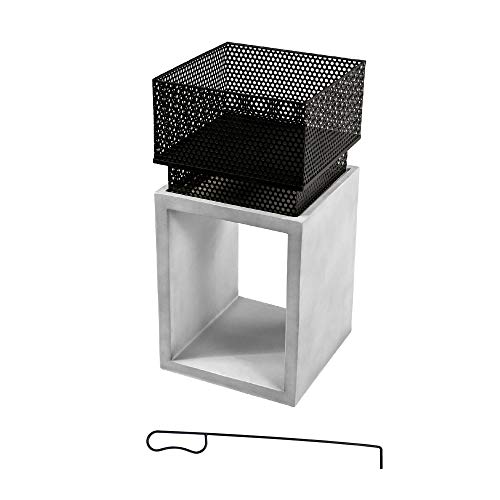 Teamson Home Braséro de Jardin à Bois Chauffage extérieur Ciment Foyer Acier carré 38 cm avec tisonnier Gris Noir PT-FW0005