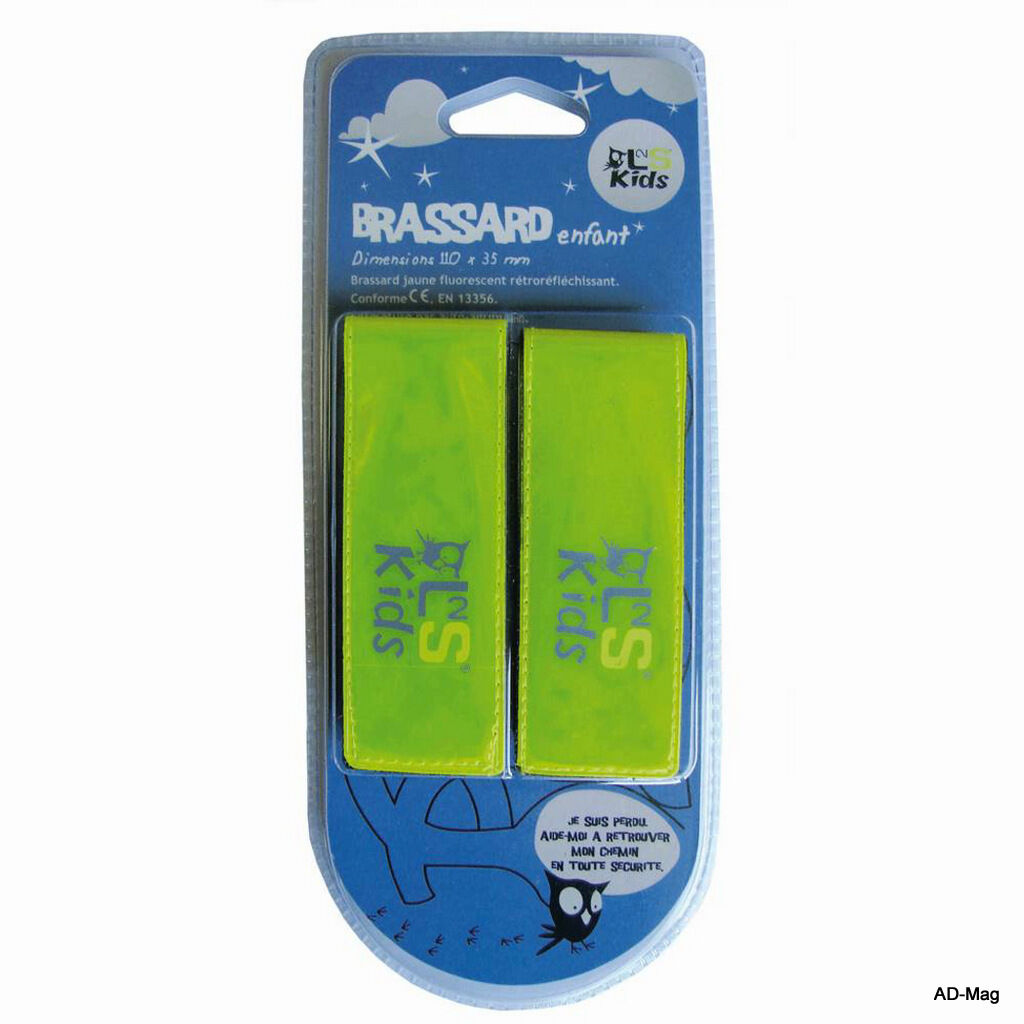 x2 - Brassard Sécurité Enfant Jaune Fluo Réfléchissant pr Vélo... 110x35mm NEUF