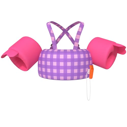 HeySplash Gilet de Natation, Gilet de Natation avec Sangle Réglable pour Enfants de 22-44lbs, Brassard Apprendre à Nager Flotteur de Piscine pour Enfant de 2-6 Ans, Plaid Violet Rose