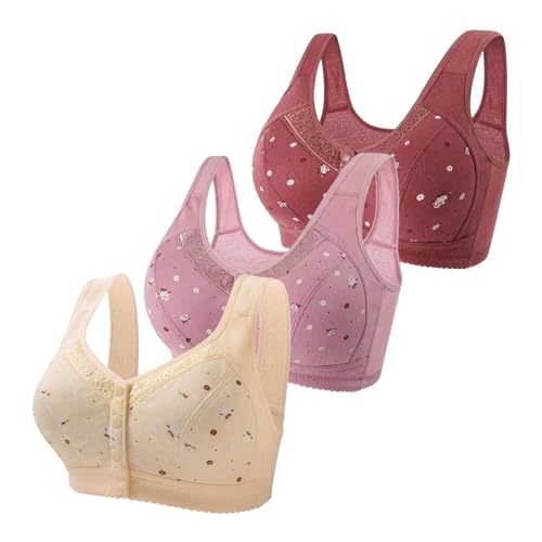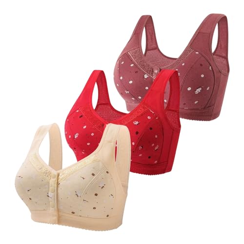 Lot de 3 Soutien Gorge Fermeture Devant Femme Sexy, Brassière Femme sans Armature Grande Taille Soutiens-Gorge Push Up Larges Bretelles Bralette avec Boutons Lingerie Confortable Quotidien
