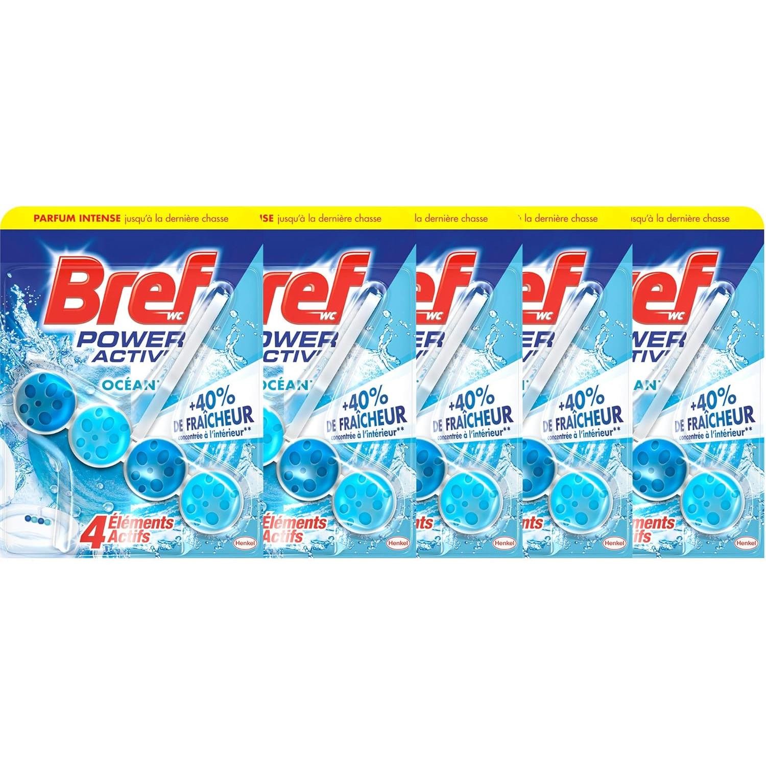 Bref Lot de 5 Duos Pack 2 Blocs WC 50g Power Activ' Océan Produit Nettoyant Détartrant