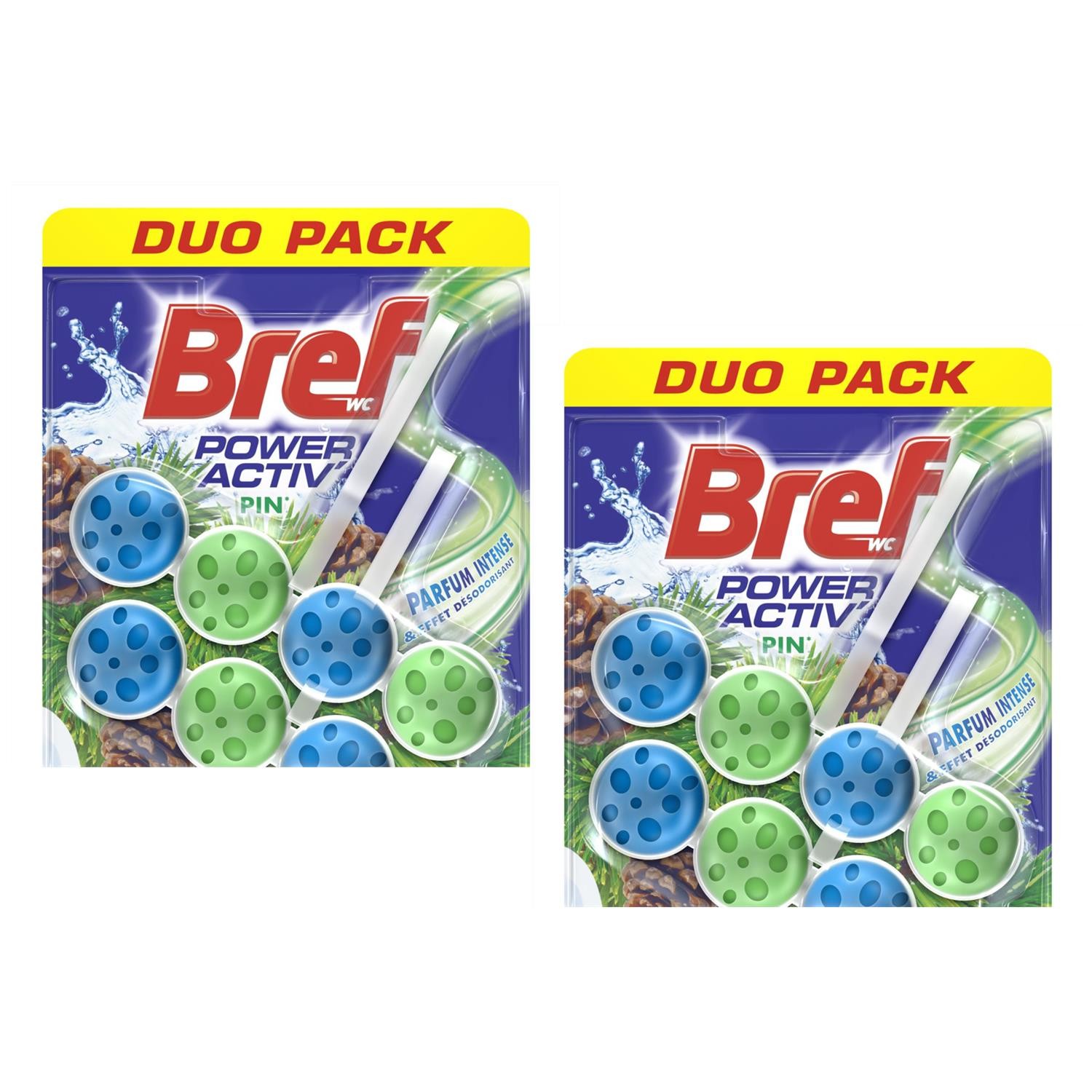 Bref Lot de 2 Duos pack 2 Blocs WC 50g Power Activ' Pin Nettoyant Détartrant WC