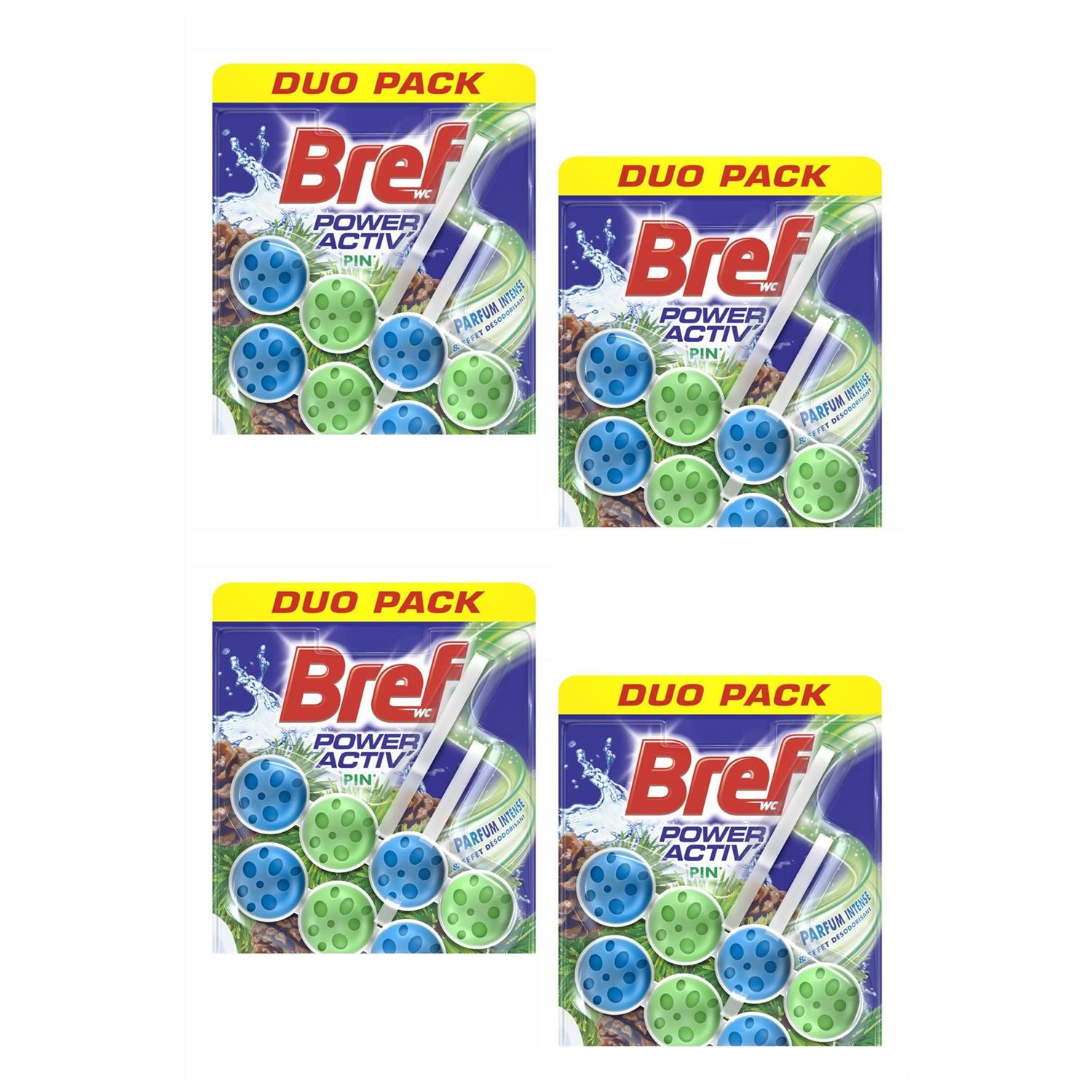Bref Lot de 4 Duos pack 2 Blocs WC 50g Power Activ' Pin Nettoyant Détartrant WC