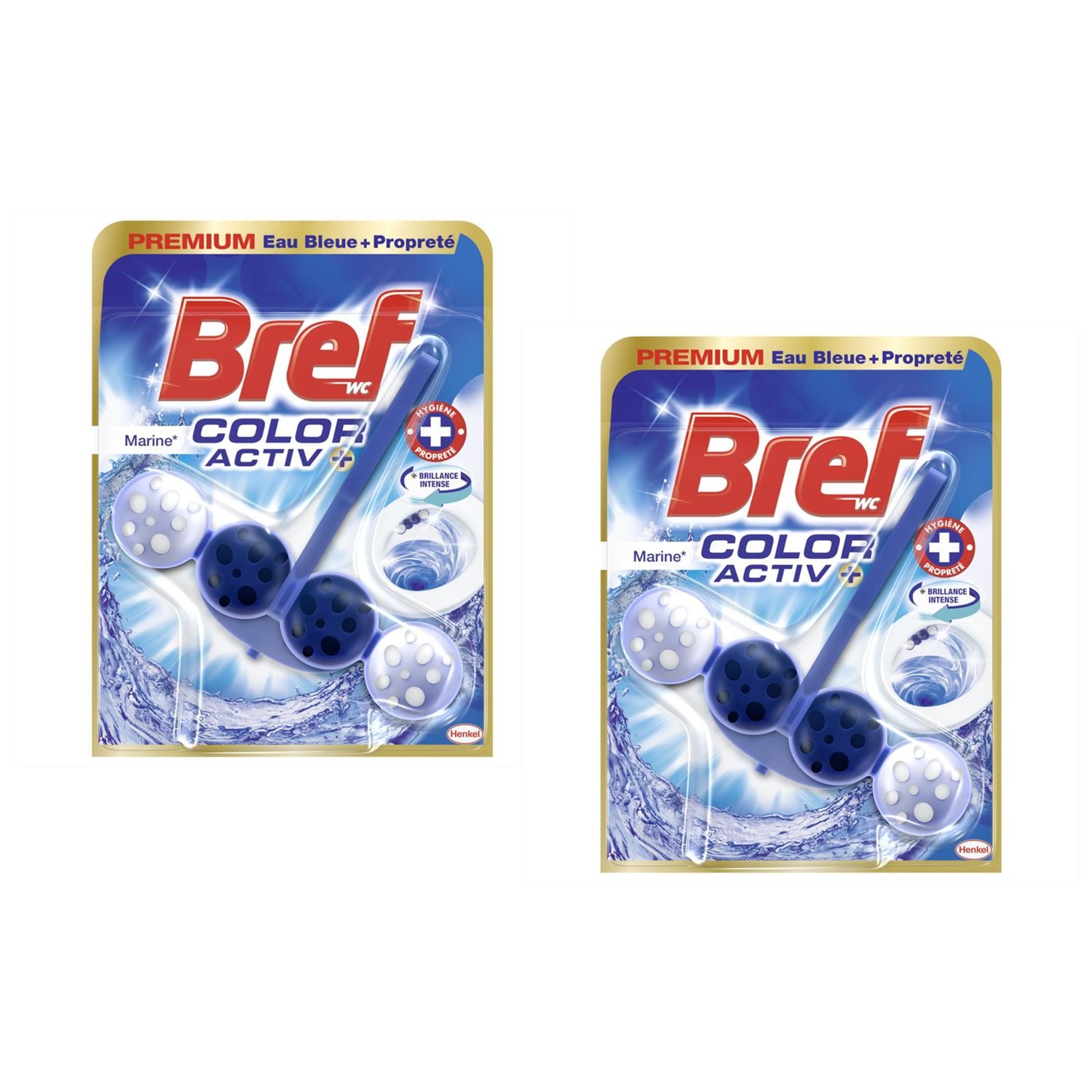 Bref Lot de 2 Blocs WC Color Activ+ Eau Bleue et Stop Odeurs 50g - Marine