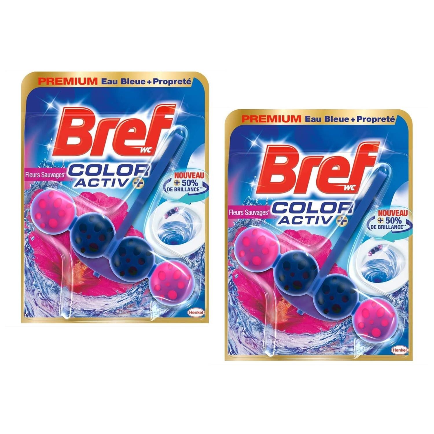 Bref Lot de 2 Blocs WC 50g Color Activ+ Fleurs sauvages - Nettoyant Détartrant toilettes