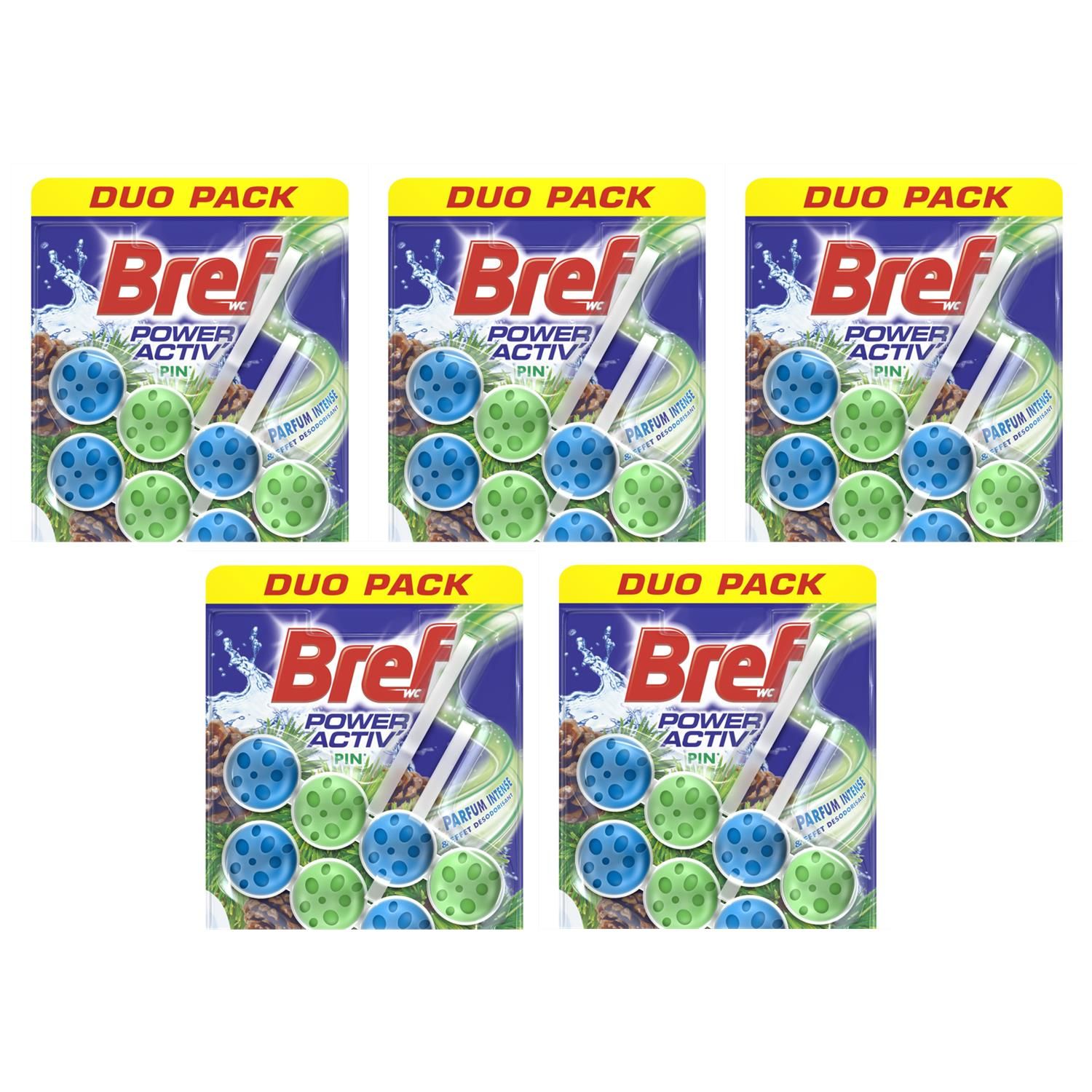 Bref Lot de 5 Duos pack 2 Blocs WC 50g Power Activ' Pin Nettoyant Détartrant WC