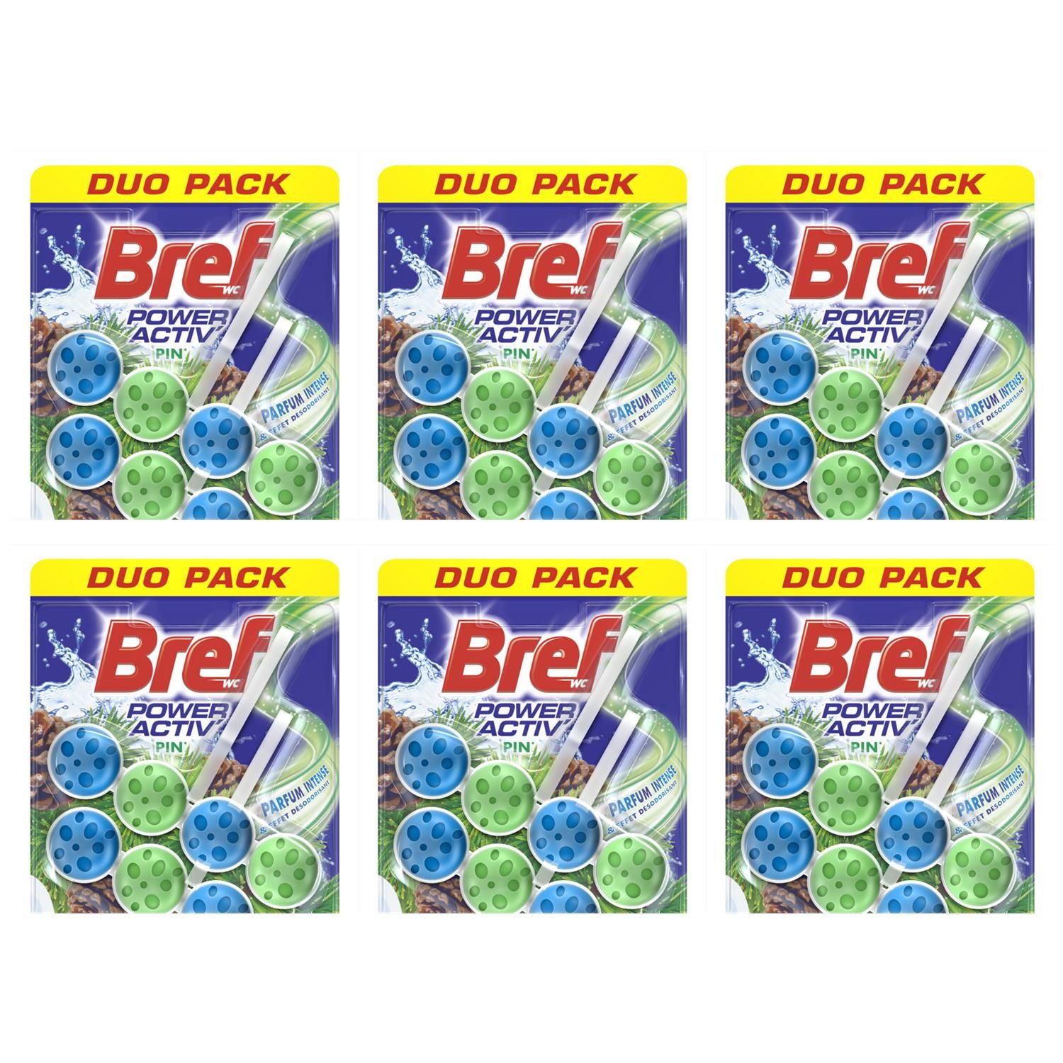 Bref Lot de 6 Duos pack 2 Blocs WC 50g Power Activ' Pin Nettoyant Détartrant WC