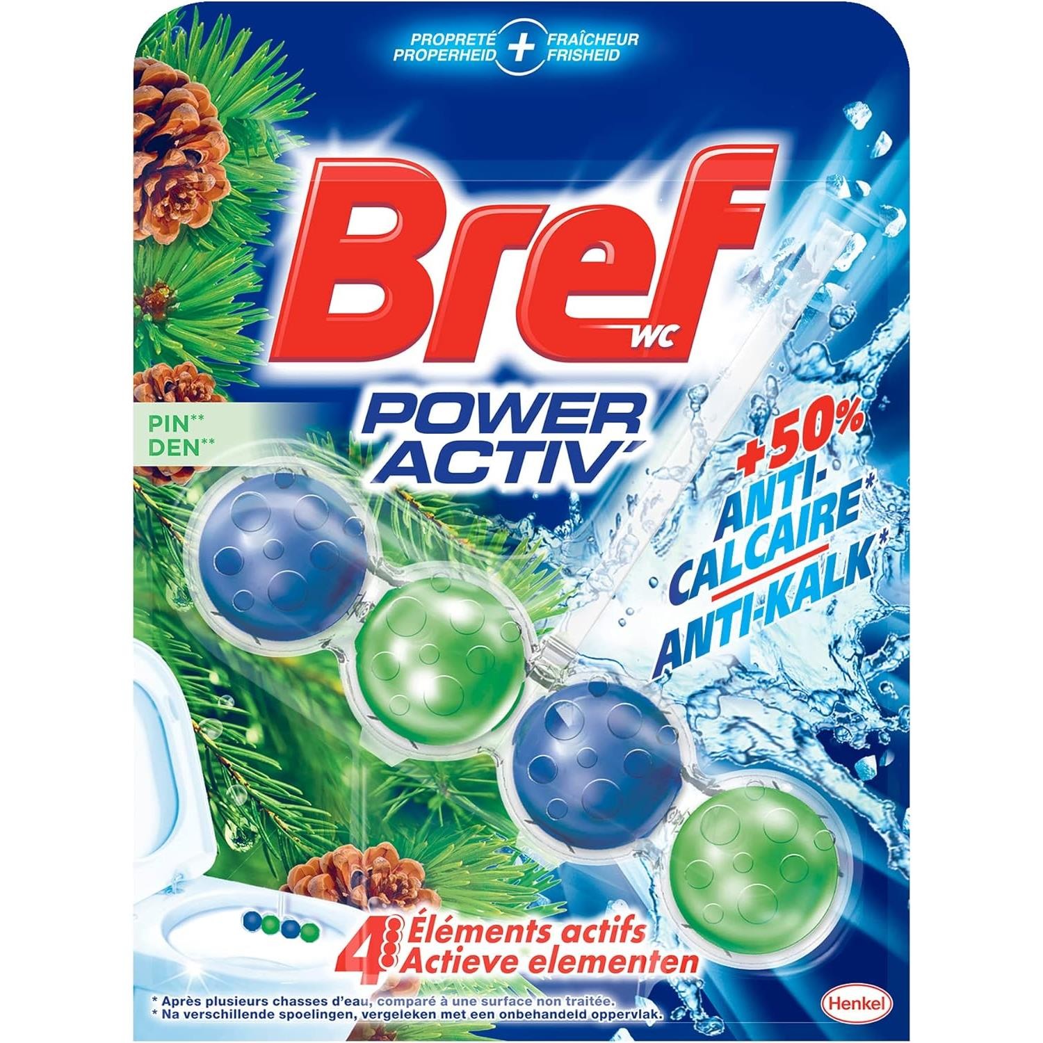Bref WC Lot de 3 Blocs WC 50g Power Activ+ Hawa¿ ¿ Produit Nettoyant D¿tartrant toilettes