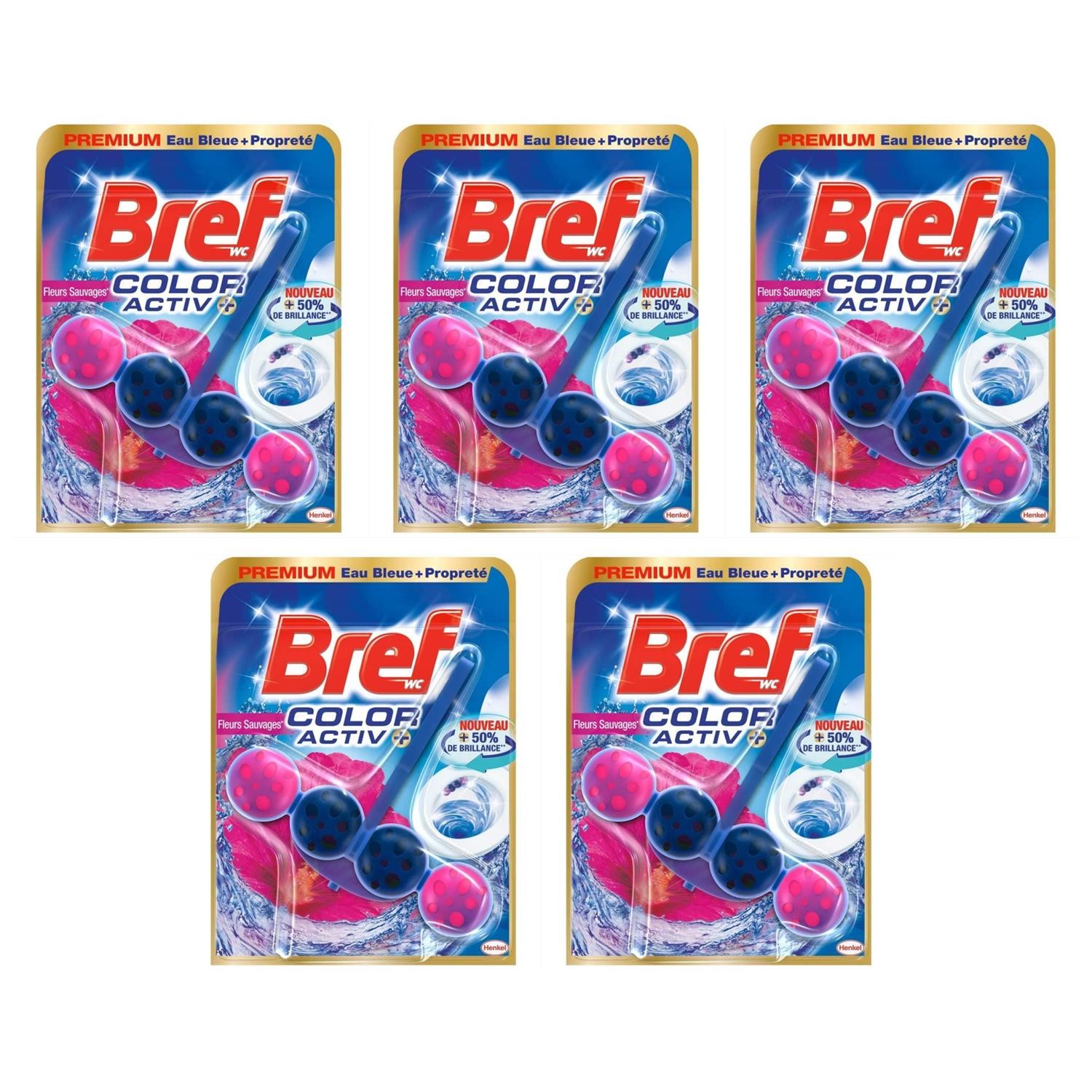 [2592308-5] Bref Lot de 5 Colors Activ+ Lagon – Bloc WC (50g) – Produit Netto...