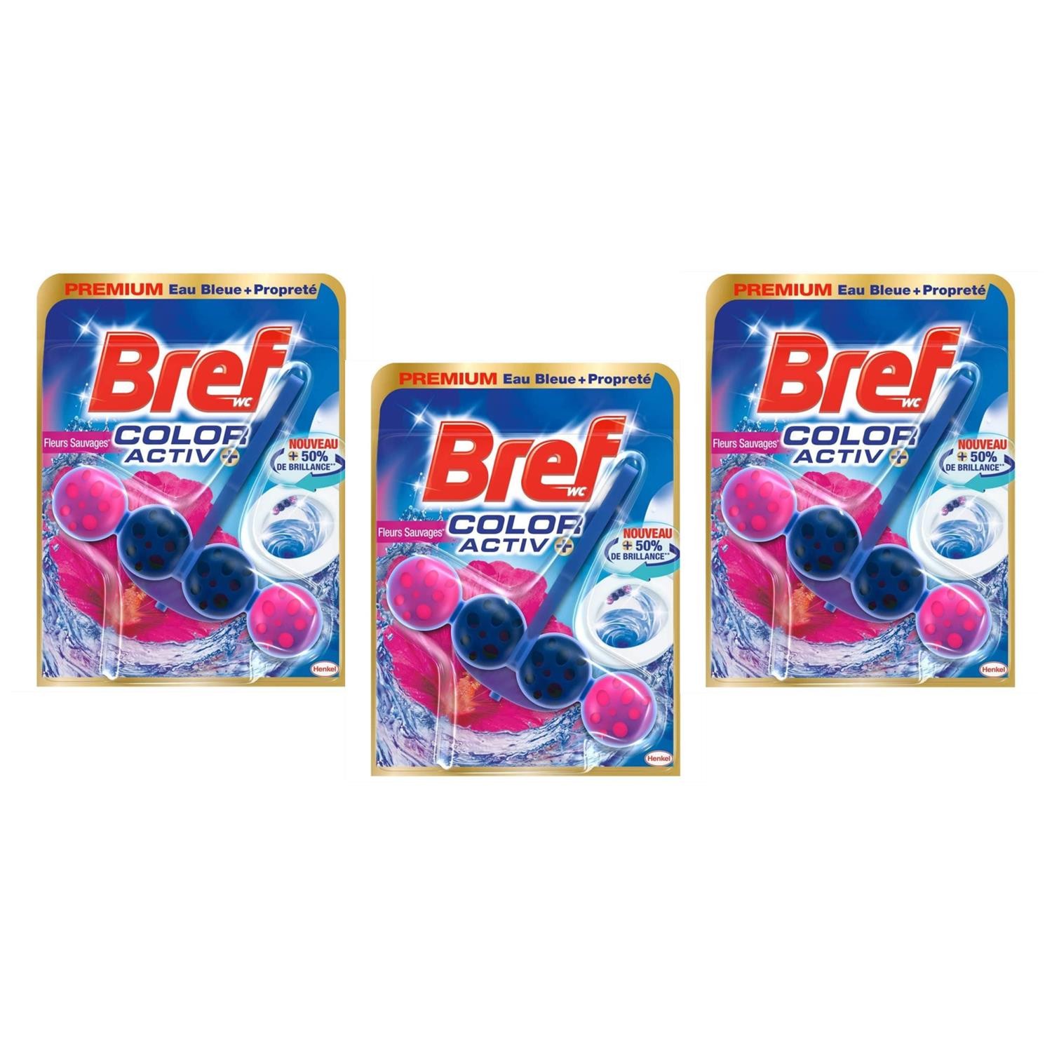 [2592308-3] Bref Lot de 3 Colors Activ+ Lagon – Bloc WC (50g) – Produit Netto...