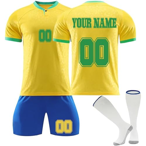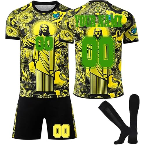 JAFCUE Personalised Brésil 25/26 Maillot De Football avec Votre Propre Nom/Numéro, Kits De Football Cadeaux De Football Adaptés comme Cadeau pour Les Fans De Football(2)