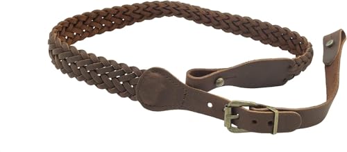 Januel - Bretelle pour Arme - Bretelle pour Carabine - Bretelle pour Fusil - Cuir Tressé 7 Brins - Largeur 25mm - Longueur 100cm - Longueur Réglable - avec Boutons de Fixation - Marron