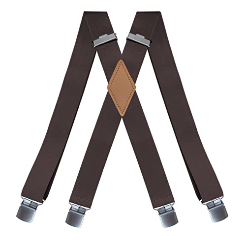 SDGBCXD Bretelles pour Hommes, Bretelles Vintage for Homme, Robustes, Grandes Tailles, 4 Clips, Dos en X Ajustable(Deep Brown)